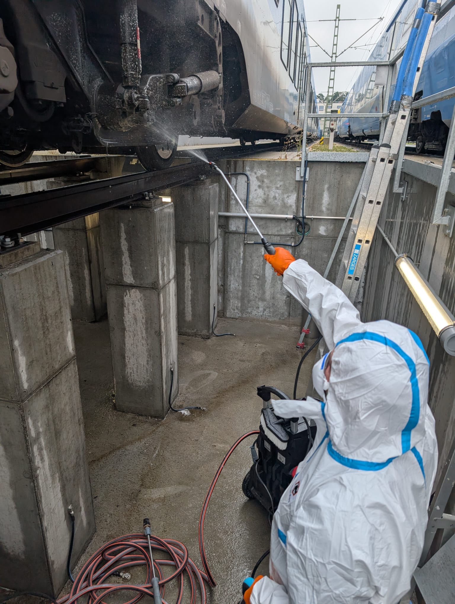 Ja. Außen- und Unterbaubereiche (Front, Kupplung, Schürze, Trittstufen) werden – sofern zugänglich und freigegeben – gründlich gereinigt und desinfiziert.